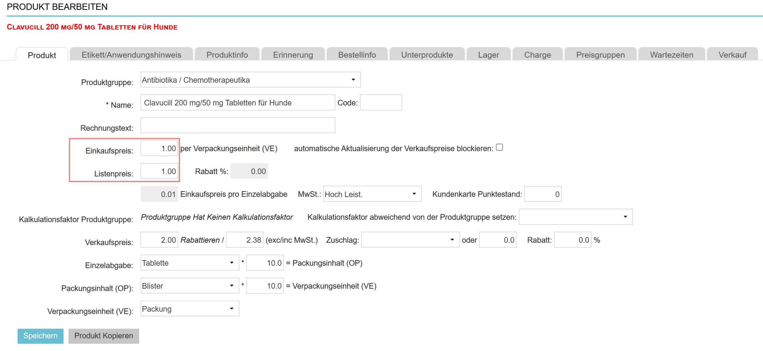 Einkaufspreis = der tatsächliche Preis, zu dem das Produkt von Ihrer Praxis eingekauft wurde (also Listenpreis minus ausgehandelte Rabatte).