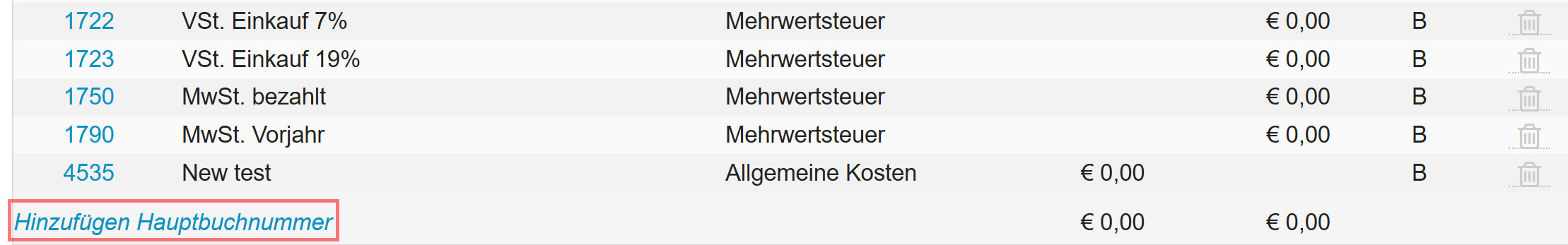 - Sobald Buchungen auf einem Hauptbuch vorgenommen werden oder ein Startbetrag eingetragen wurde, kann dieses Hauptbuch ebenfalls nicht mehr gelöscht werden.