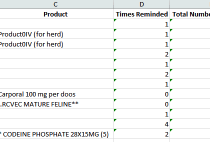 When viewing the report in Excel, you may find that the “Times Reminded” and the “Total Number Reminders” columns are incorrectly imported as text (if this happens you will see a green triangle in the top-left of the cell). To correct this, select the cells with the green triangle, then from the pop-up button, select “convert to number”.