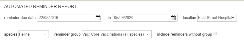 > Reports > Automated Reminder Report - At the top, you will have the ability to filter on the following: