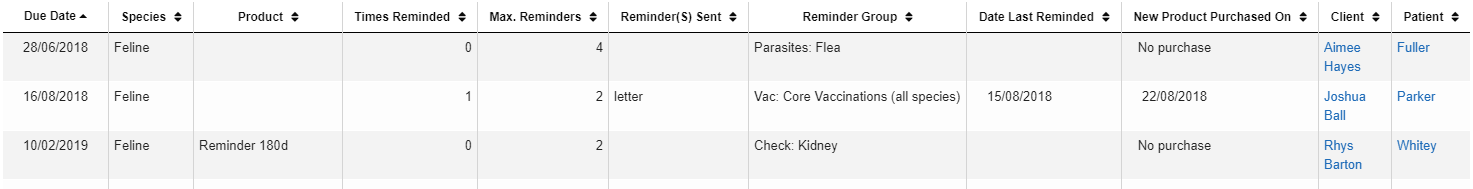 There might be instances where the fields in the product column are empty, this is an indicator that the reminder has been added manually and has not been added with a product attached to it.