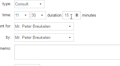 This is box titleWhen you select an appointment type while creating an appointment in the diary, you can always manually adjust the duration if necessary. - Enter a number in the “sequence” field. This will determine the order in which the appointment type is displayed in the drop-down menu. The lower the number, the higher up in the drop-down it will be displayed.