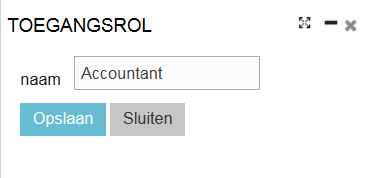 - Er verschijnt een pop-up scherm. Geef hier de naam in van deze nieuwe rol en klik op Opslaan.
