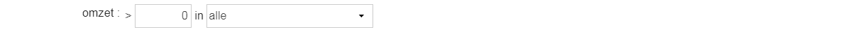 - Bij “omzet” kun je aangeven of je op cliënten wilt filteren gebaseerd op de omzet die ze hebben gegenereerd. Je vult in het eerste veld de omzet in en in het dropdownmenu kun je een jaartal selecteren (als je alleen cliënten in de resultaten wilt zien, die in een specifiek jaar een bepaalde omzet hebben gegenereerd).