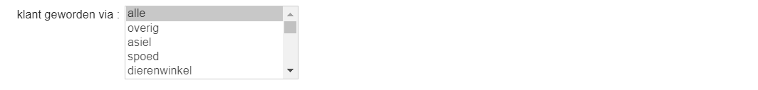 - Bij “klant geworden via” kun je cliënten filteren op de manier waarop ze klant zijn geworden. De informatie komt uit de Cliëntdata > tabblad Info.
